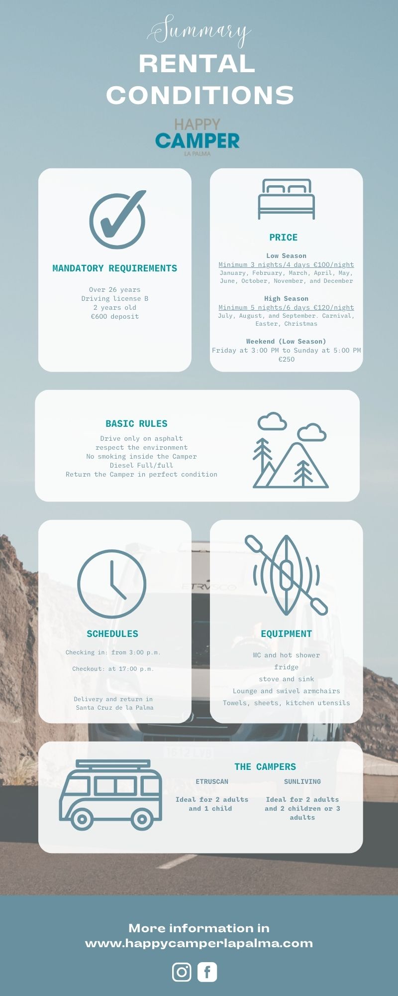 Puedes reservar directamente en el +34 609 989 460 or by email hola@happycamperlapalma.com indicating in the subject RESERVATION, specifying in the content of the email the dates (date of entry and date of departure) and number of people..